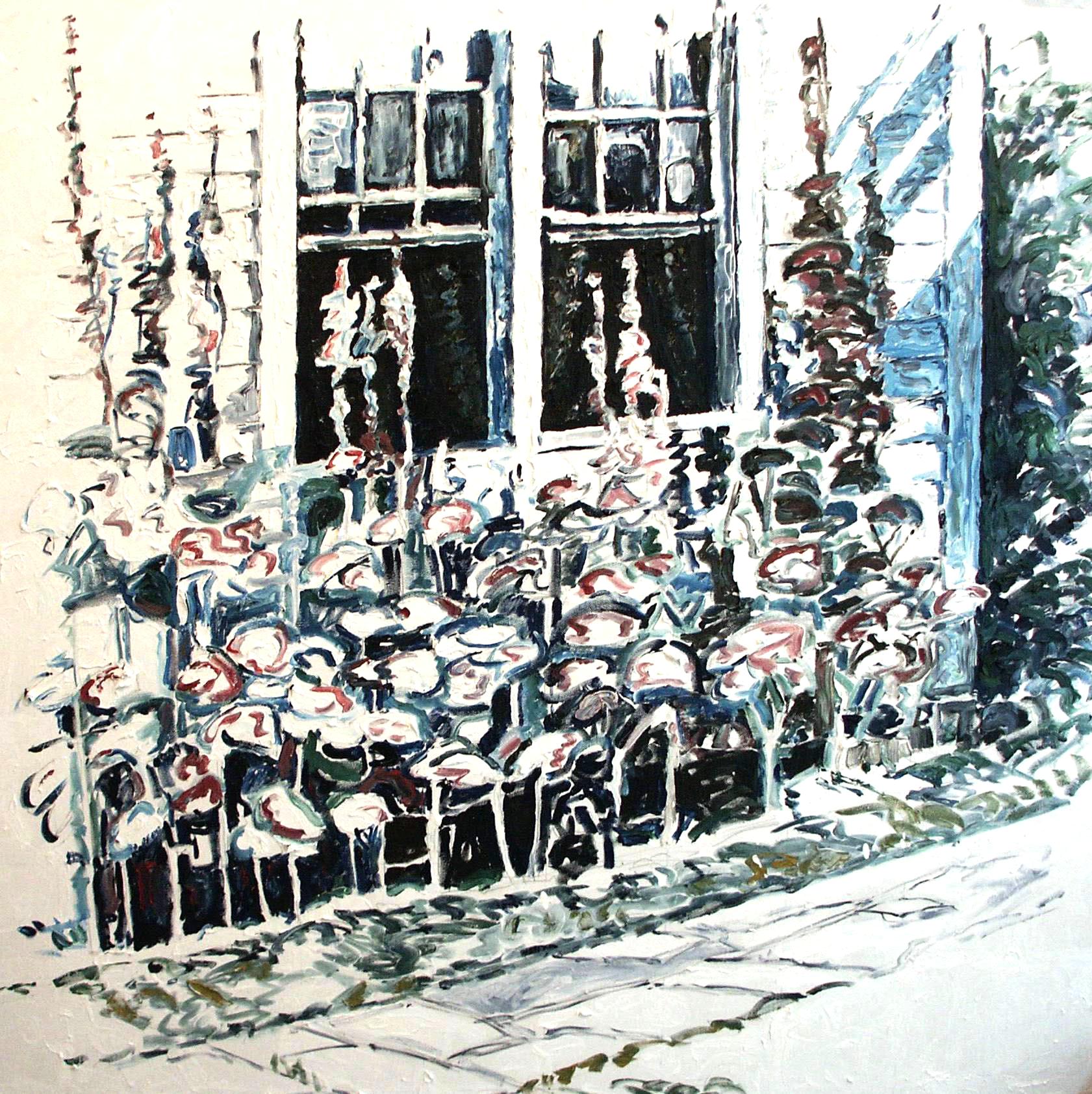 Hollyhawks 36 x 36 inches